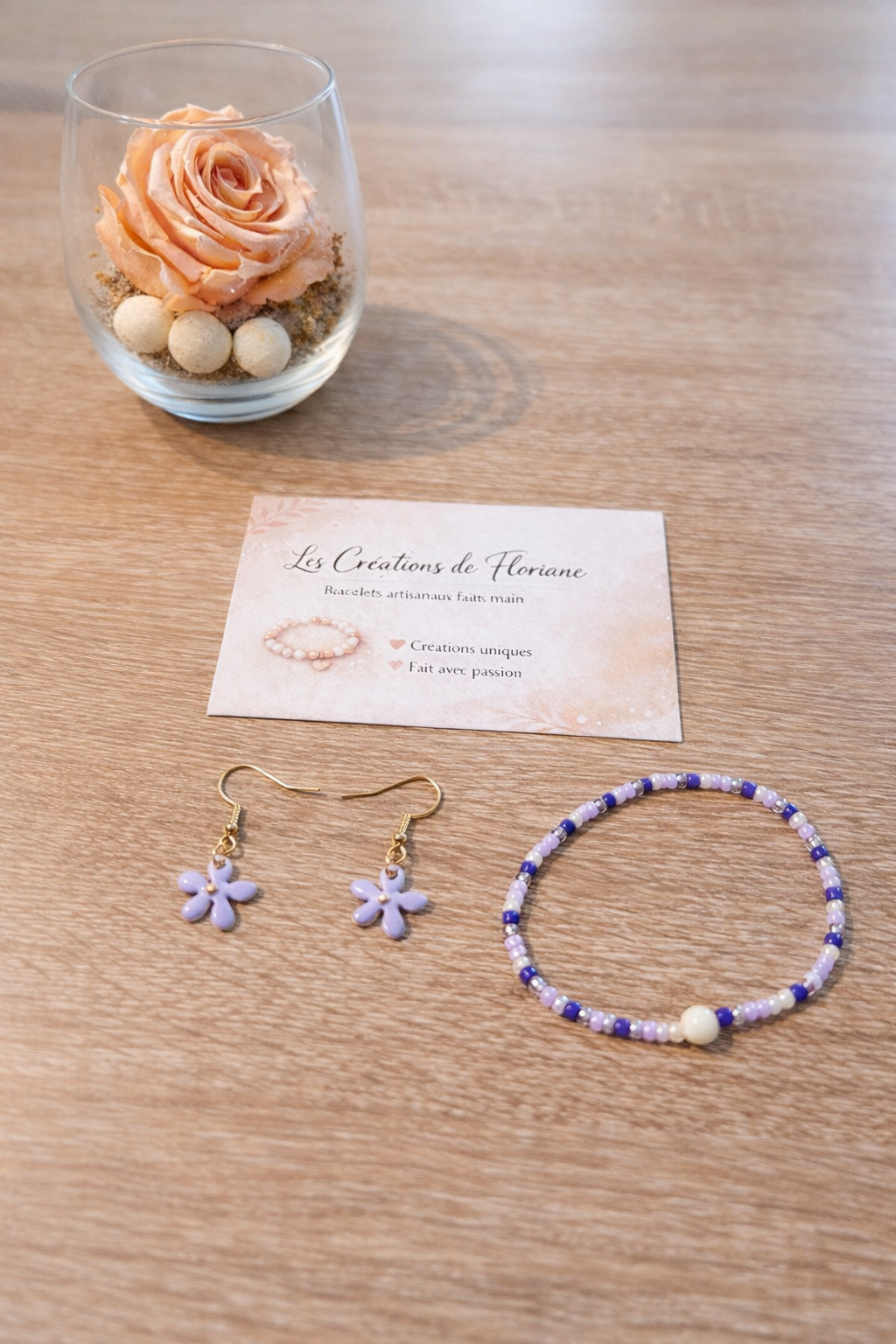 💚 Bracelet perles fait main - vert pastel & violet 💜